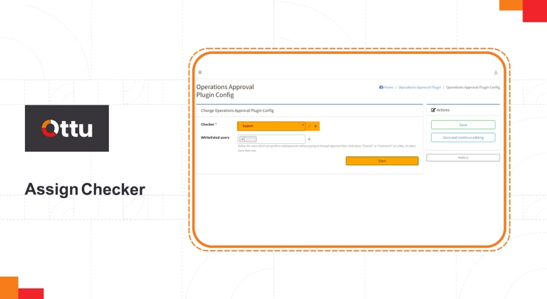 Only one authorized user can assign a checker user. To assign a checker, navigate to the Operations Approval Plugin > and select Operations Approval Plugin Config.