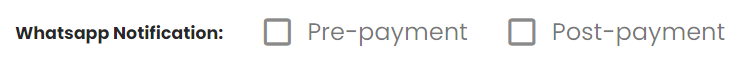 Enabling WhatsApp Notification: Merchants can enable WhatsApp notification channels by selecting the corresponding checkboxes during the payment transaction creation process.