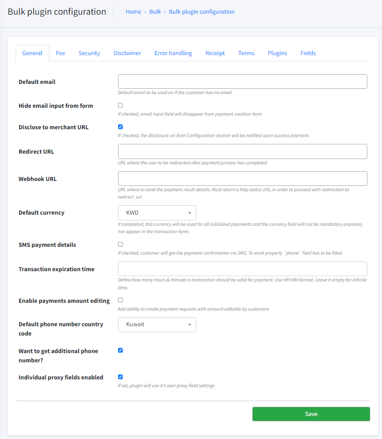 Bulk Payment Request Configuration