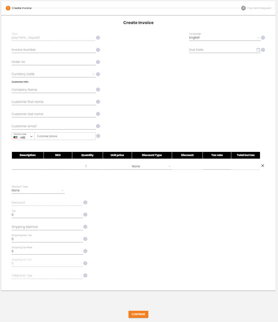 After the information has been filled in, Continue button should be clicked to proceed to the Payment Request Form.