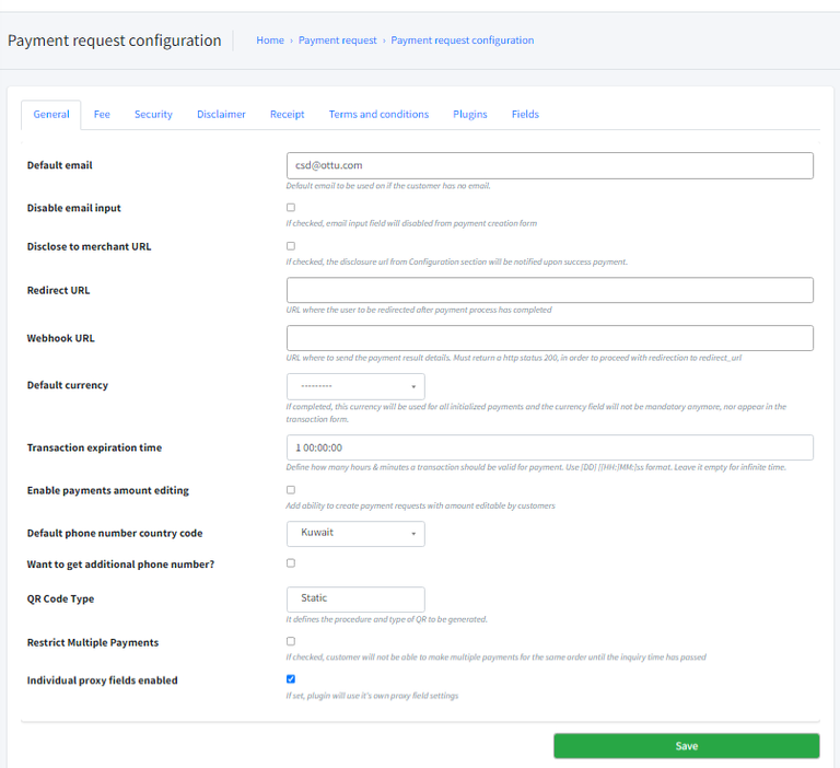 Payment Request Configuration