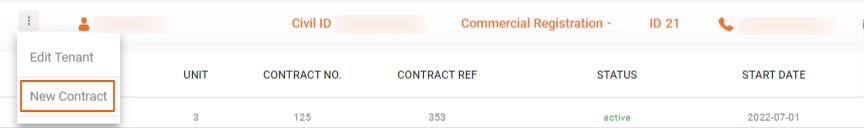 Within the tenants list, merchants can easily click on the three dots beside the tenant's name and select the "New Contract" option. Subsequently, the merchant will be redirected to the new contract form.